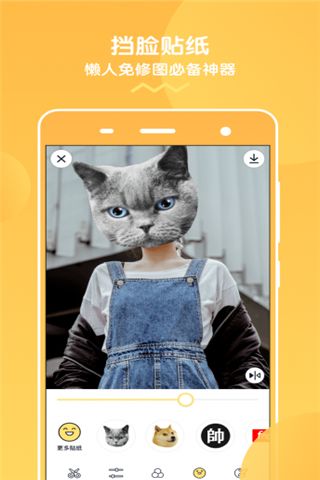 3、日常生活中有太多太多需要挡脸的图片,因此,挡脸相机为你准备了足够多的贴纸,让你的照片不露脸也不尴尬,而且还很酷。