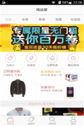 精品屋安卓版是一款购物商城软件,汇集了淘宝天猫等大网站的优惠折扣商品,用户能够便捷的选购海量折扣商品,还提供会员数据管理服务、签到领积分换取相应的商品等。