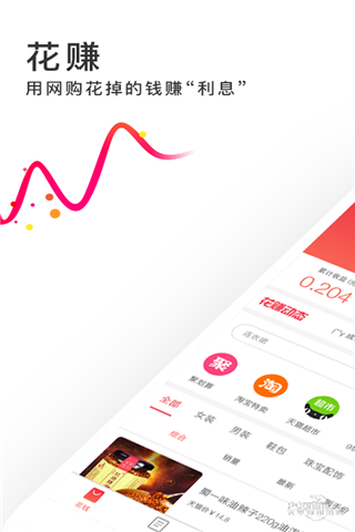 1.花赚是一款消费理财式的导购APP,帮用户实现了网购花钱的同时又能赚钱。