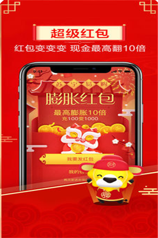 苏宁膨胀红包安卓版是一款苏宁易购推出的抢红包游戏,用户可在苏宁易购最新版首页或微信渠道H5参与活动,使用支付宝、微信支付、易付宝和红包账户余额等形式进行红包充值,会有膨胀奖励哦,还可以快速提现。