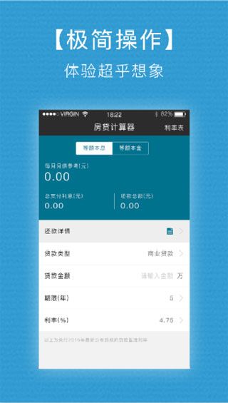 房贷计算器安卓版是一个专业精准的房贷计算,各类专业人士的房贷计算好帮手。能根据您贷款金额及年限,精准的分析出月供构成,包括:总利息、每月本金、利息等。无论公积金贷款、商业贷款,还是组合贷款。不管是等额本息还是等额本金,一个工具全搞定。还款计划清晰排列,银行利率调整全无惧。