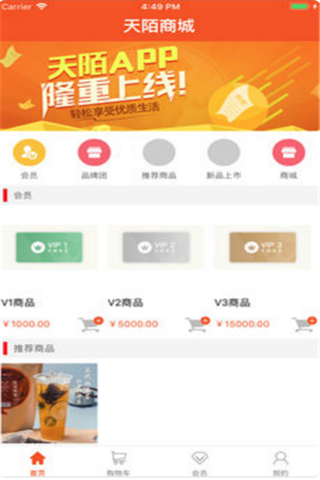 天陌商城iOS版是一款手机在线购物平台,功能强大,提供了丰富的商品,日常用品应有尽有。还有超级会员功能,彰显您尊贵身份,让你体验便利购物服务。