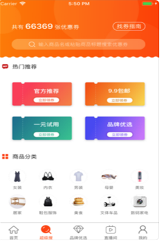 女装、男装、鞋包、美妆、护肤、家居、母婴、零食、数码...优惠一网打尽。