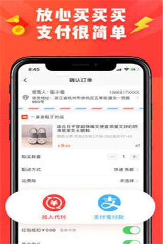 4、【放心买买买,支付很简单】淘宝特价版,拥有超小安装包,为您节省存储空间,流畅购物。您可以快速用手机号注册,随时随地查看交易和物流,无需复杂的操作,就可以使用支付宝带来的放心购物环境,您还可以请人代付订单,在家轻松收包裹!