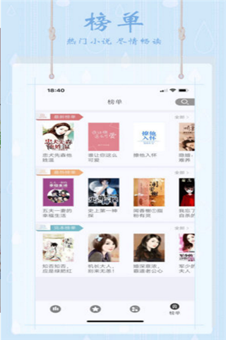 小说榜ios版是一款言情小说阅读大全,汇聚海量精品小说资源,涵盖各种类型的优质小说,智能收藏,阅读后自动生成书签,便于下一次的阅读,精选分类,致力于为广大用户带来更加畅快的阅读体验。享受快读书籍免费时光。
