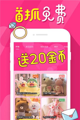 登录就送20个金币,可以免费抓娃娃,抓得越多,邀请好友越多,奖励就越多。