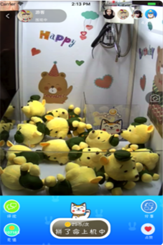 真实直播机抓娃娃,让你的朋友一起来观战吧。