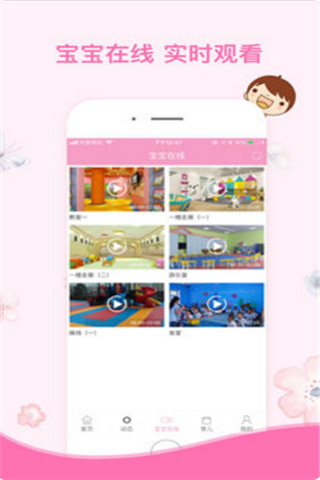 2、宝宝动态:与老师、其它家长进行图文、视频动态互动。