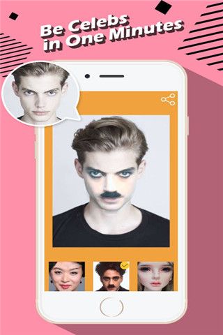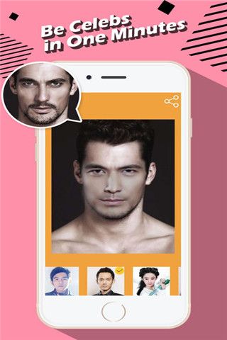 照片换脸可以给你换上所选图片中的面孔。强大的照片换脸可以识别你所选图片中人物面孔,以后想换谁的脸,拍一张即可!