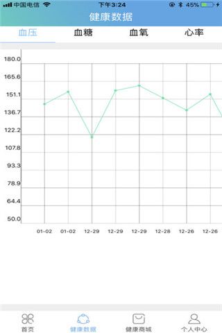 测量的健康数据即时同步云端,生成血糖、血压、血氧变化曲线,让用户及家属了解健康状况。