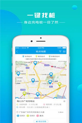 1.轻松找桩——支持充电站位置查询与导航,查看充电终端充电状态,带您去最符合要求的电站充电;