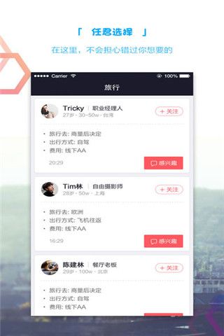 2.巡欢旅行是一款面向年轻女性和精英男性的旅行约会APP。