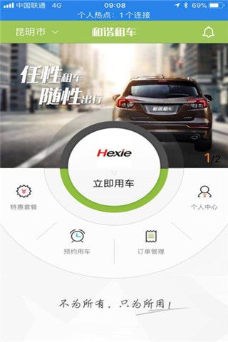 2、您可以随时随地通过手机搜索附近网点的车辆,取车、用车、还车,自助完成订单,按分钟计费,计价更合理。