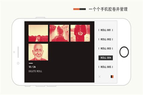 2.• 点击主画面右上角“1/24”按钮,移动至相册;长按可更换胶卷。