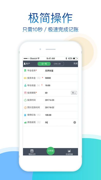 【极简操作】:专为P2P投资者定制,操作简单,10秒就能轻松记一笔