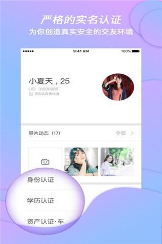 1、实名制注册。用户在注册时候都将进行实名制审核,真实照片,人工审核。维护高品质的社区氛围, 杜绝婚托、广告等诈骗行为,多机制确保资料真实性。