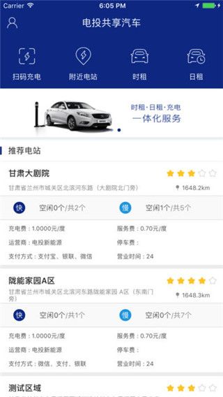 “电投共享汽车”是由甘肃电投新能源汽车技术服务有限公司推出的一款以充电、租车为服务类应用,目前主要通过互联网+物联网的模式将充电桩、监控系统、运营平台以及多种支付方式(银联、微信、支付宝)做集成,实现通过推荐电站、附近电站、路线导航、定位、扫描充电、预约充电等相关功能。为用户提供了一款以智能、高效、可靠的互联网充电服务,全面支撑智慧城市建设。