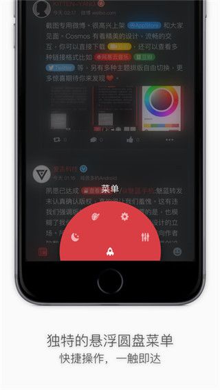 Co**os是一款别出心裁的微博第三方客户端软件,其独特的悬浮圆盘菜单,让操作更加便捷,用户需要的功能一触即达,悬浮视频窗口随意拖动,轻松下载。此外还有高级的UI控制面板,随心所欲地控制一切,便捷地转发回复操作,不动声色快人一步。