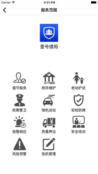 壹号镖局app是一款保镖服务订单平台,用户可以在这里选择值守服务、秩序维护、老幼护送、政要警卫、接机送站、安检防爆、报警响应、贵重押运等安保服务,平台警卫综合素质优良,能够在关键时刻为用户挺身而出,出色地完成安保任务。