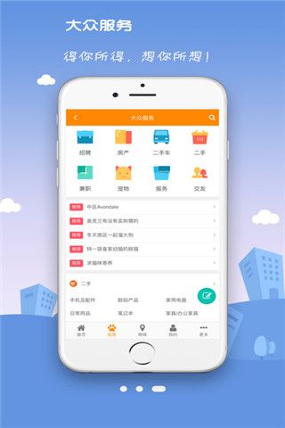 3.主要功能有:大众服务、部落格、贴吧、新闻资讯、找工作、家政、大众服务商城、抢购、云购、美食馆、去哪儿、商家入驻。