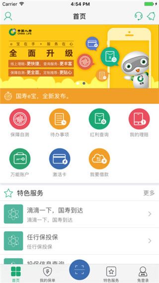 4.提供保单借款、保单还款、信息查询、信息变更、续期交费、理赔报案等服务功能。
