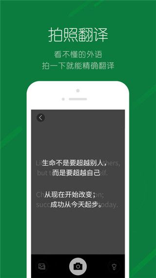 3.拍照翻译:图书、试题、路牌、菜单、广告单...随手拍照,即时获取翻译结果。