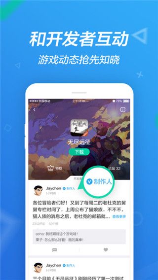 2、和开发者互动,游戏动态抢先知晓。