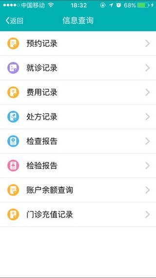 2.【信息查询】患者可以通过客户端轻松查阅检验检查报告单,免去了往返医院带来的不必要的麻烦,并且客户端还提供患者查询预约记录、就诊记录和费用记录。