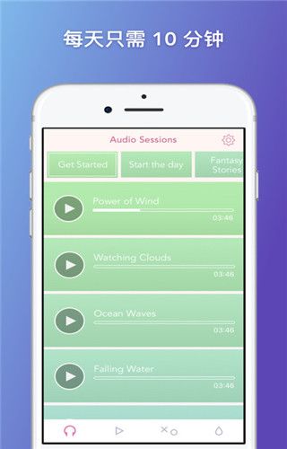 包括 60 个以上解说音频节目,跨越 7 大类,定期增加新鲜内容。在“暂停时刻”中,通过正念练习的温和引导,你会了解各种各样的主题,例如自我接纳、感恩等等。“幻想故事”会把你送到美丽安宁的地方。在“睡眠诊所”中,你会了解到有关睡眠的相关信息以及如何使夜间休息更充分。