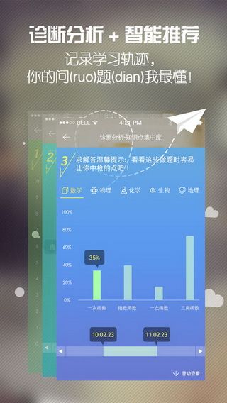 求解答iOS版是一款全能学习小助手,海量精品初高中理科试题和中高考真题模拟题试卷,题目超多,完全免费。私人定制精美纸质错题本,收录典型错题+特别提示+相关推荐练习,还附送超值的学习诊断分析报告!