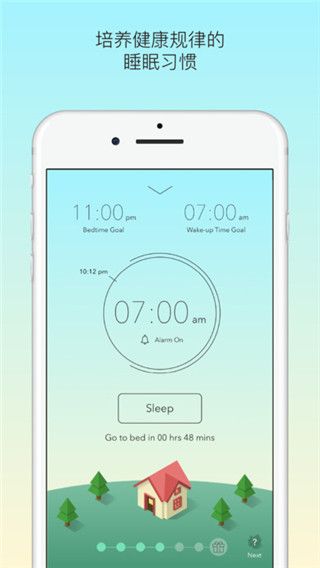1.准时就寝、起床,建造房屋,通过游戏的方式改善用户的睡眠习惯;