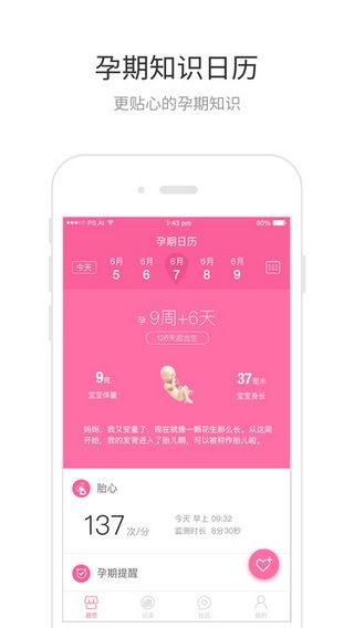 2. 孕期知识日历:提供产检提醒、例行检查、关键产检项目、起居饮食提醒。