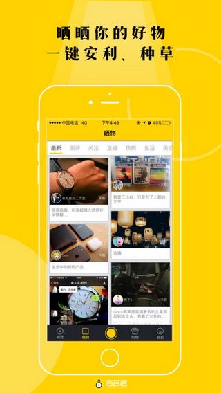 1.【精品好物推荐指南】通过拍照晒物、短视频推送和在线直播,美妆护肤、户外运动、科技测评等达人们将在海苔君为你分享他们的购物与消费心得。如果你也是时尚达人、科技极客或在任何领域有好品味的人,欢迎加入海苔君,和大家一起分享你的好物清单。