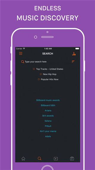 5、没有限制地播放任意视频或音乐,根据音频标题或作者搜索;