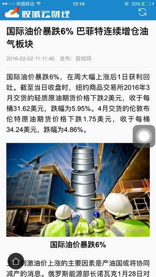 股城网iOS版是一款国内用户最多的模拟炒股平台,提供全天候24小时财经新闻,报道最新财经新闻,包括第一财经、财经日历、国内财经、国际财经等,找财经新闻就到到股城网财经频道。