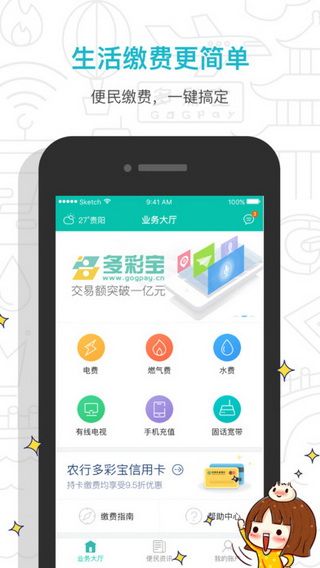 多彩宝iOS版是一款贵州省互联网综合便民服务平台,为用户提供电费、固话宽带、手机充值、燃气费、水费、有线电视、交通罚款、液化气订购、公积金缴纳服务。免去排队等候的烦恼,实现“数据多跑路、百姓少跑腿”的智慧生活。