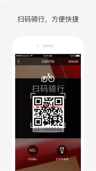3.扫码解锁用车,扫描车身二维码,即可解锁用车;