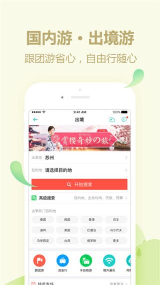 6.出境游:全球热门目的地旅游团预订、半自助游预订;跟团自助随便怎么玩;